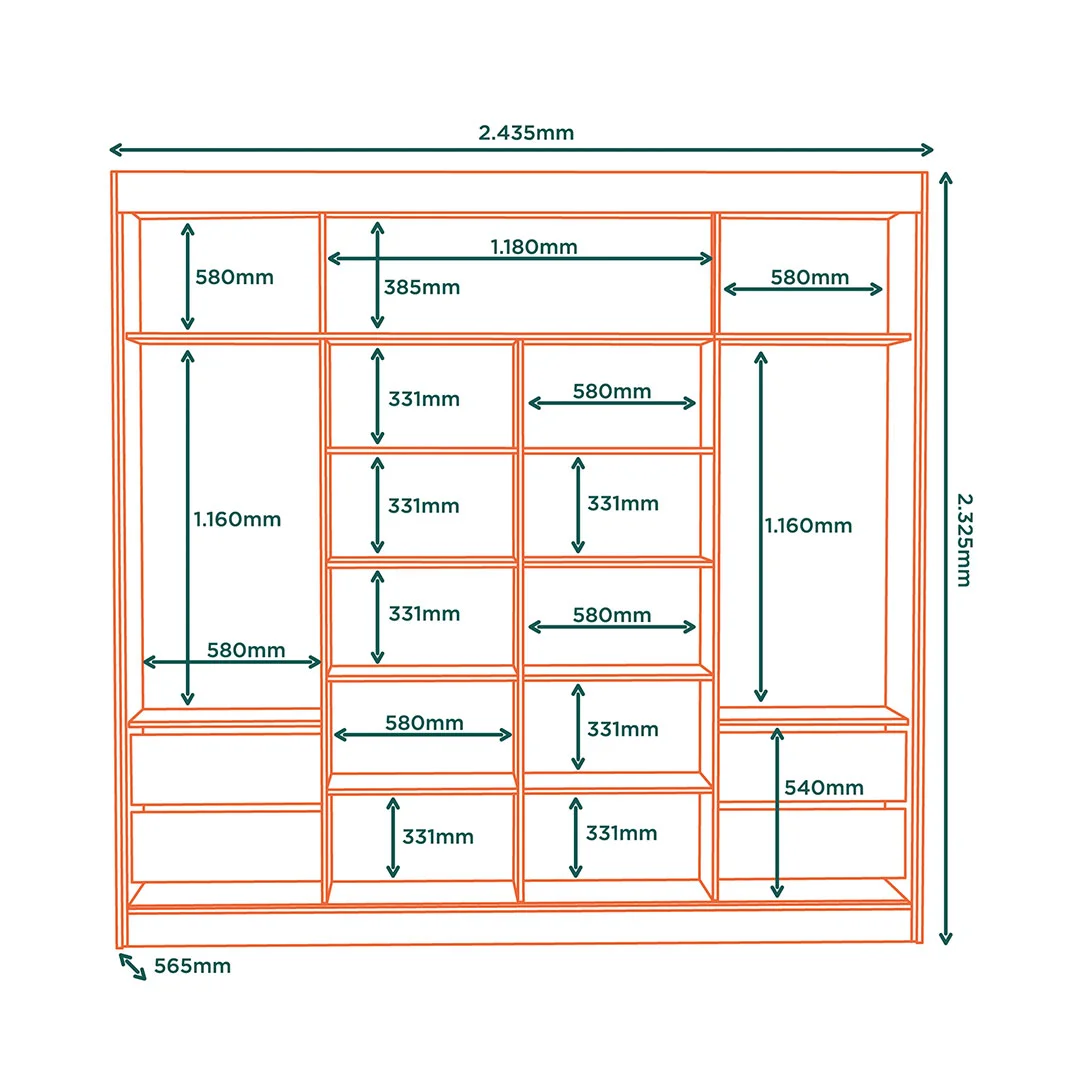 Medidas: 243.5 cm de ancho, 232.5 cm de alto y 56.5 cm de profundidad